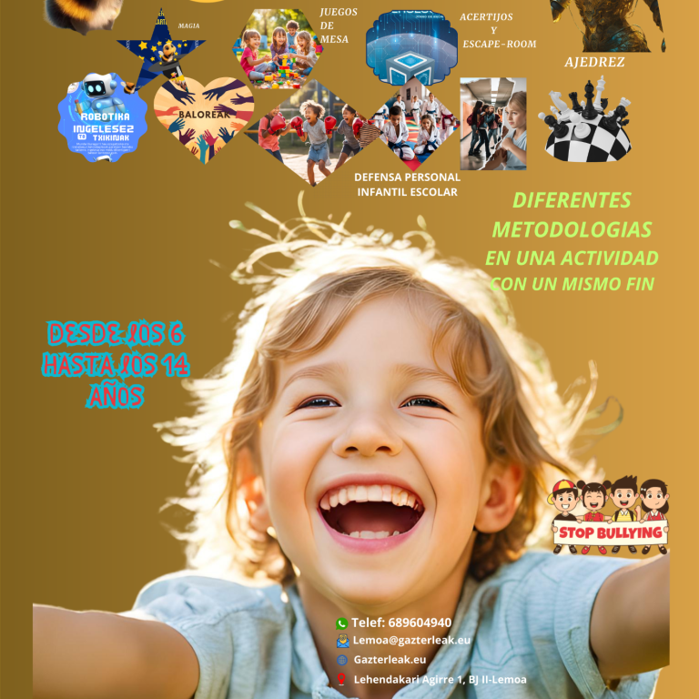 En Gazterleak acompañamos a niños, niñas y adolescentes en su desarrollo emocional, social y personal. A través de talleres, Aula Segura y actividades educativas, ayudamos a prevenir el acoso escolar, reforzar la autoestima y creamos entornos positivos.